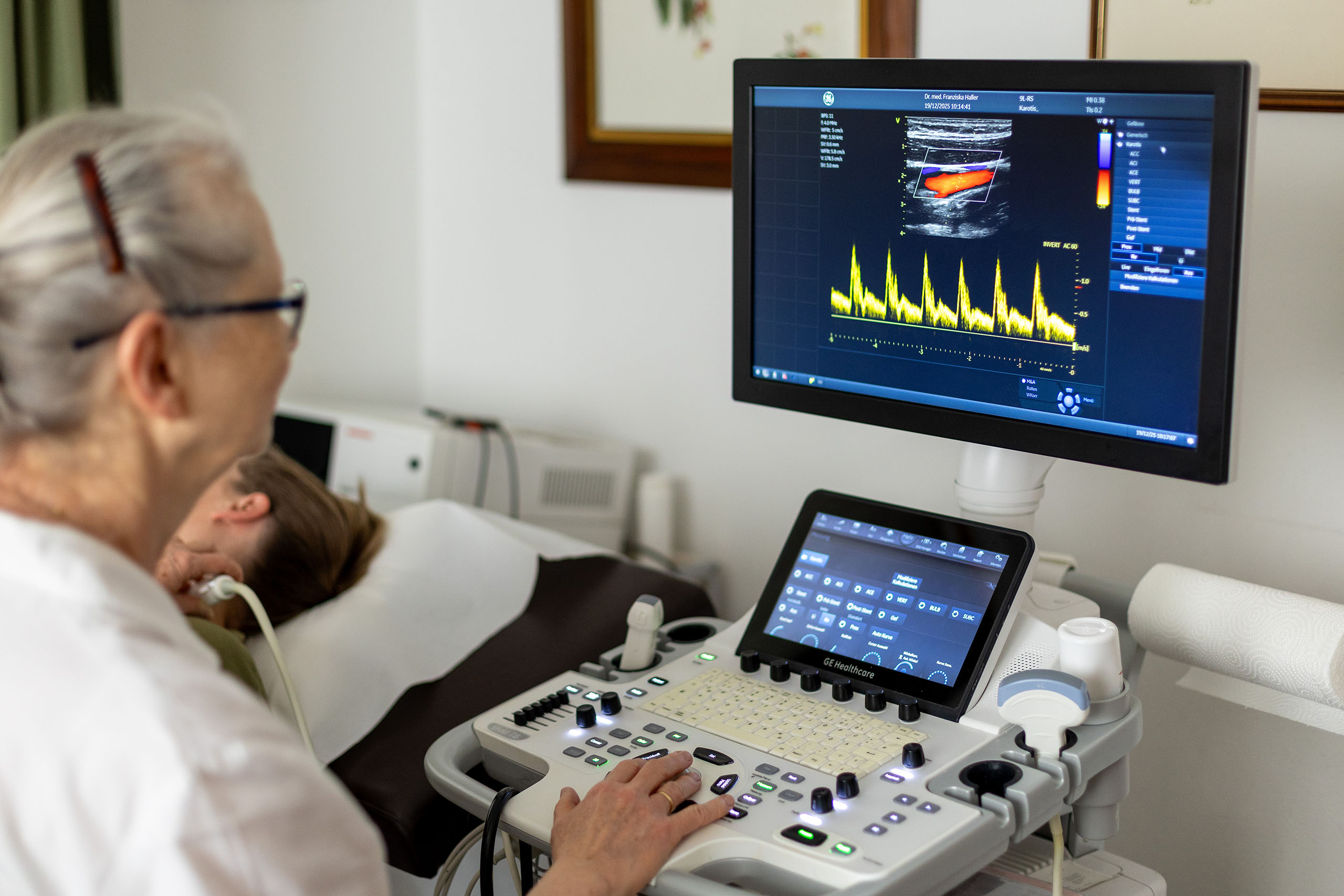 Ultraschalluntersuchung von Herz, Halsschlagadern, Bauch und Schilddrüse.